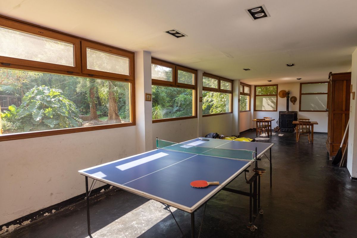 Una cocina de grandes dimensiones equipada y con espacio suficiente para cocinar entre varios; juegos de mesa, libros; un hogar a leña para los días grises y una gran piscina de 8 x 14 m con hidromasaje, parrilla y asador, una hectárea parquizada, 80 m de costa de río, voley y espacios para pescar para los que prefieren estar al aire libre.