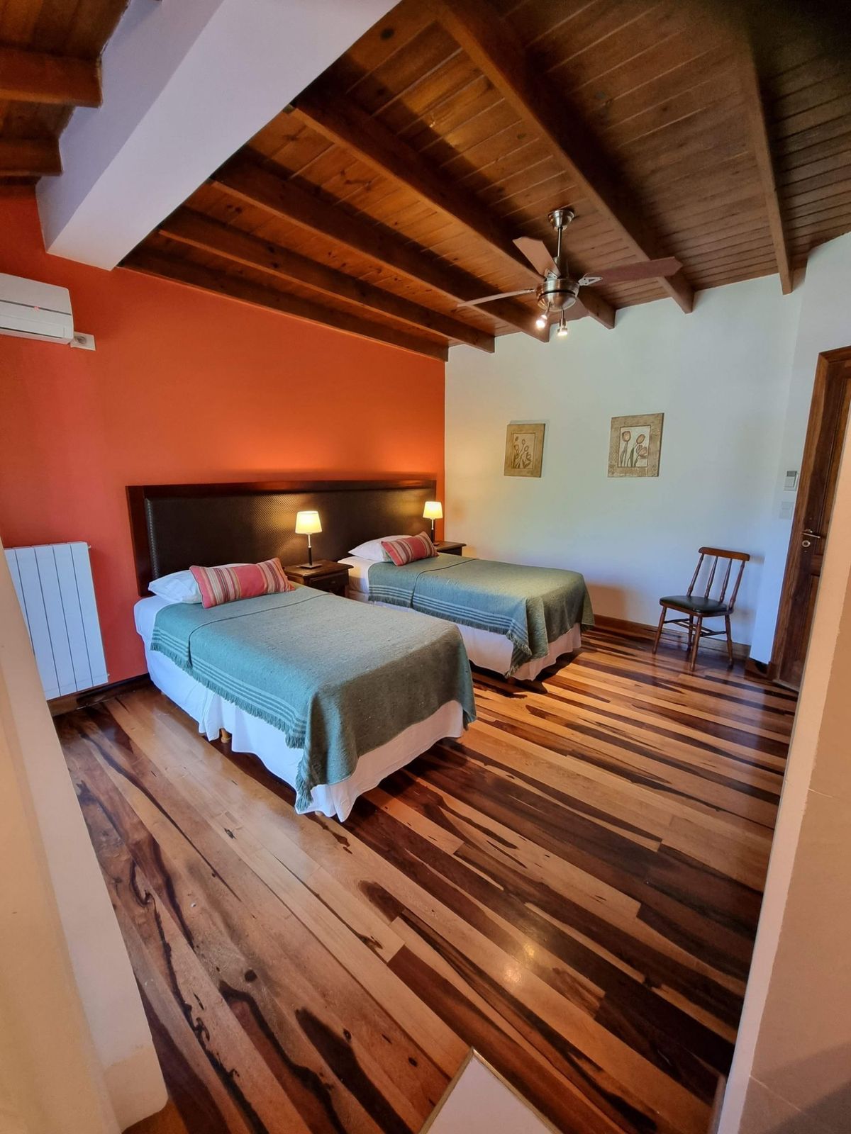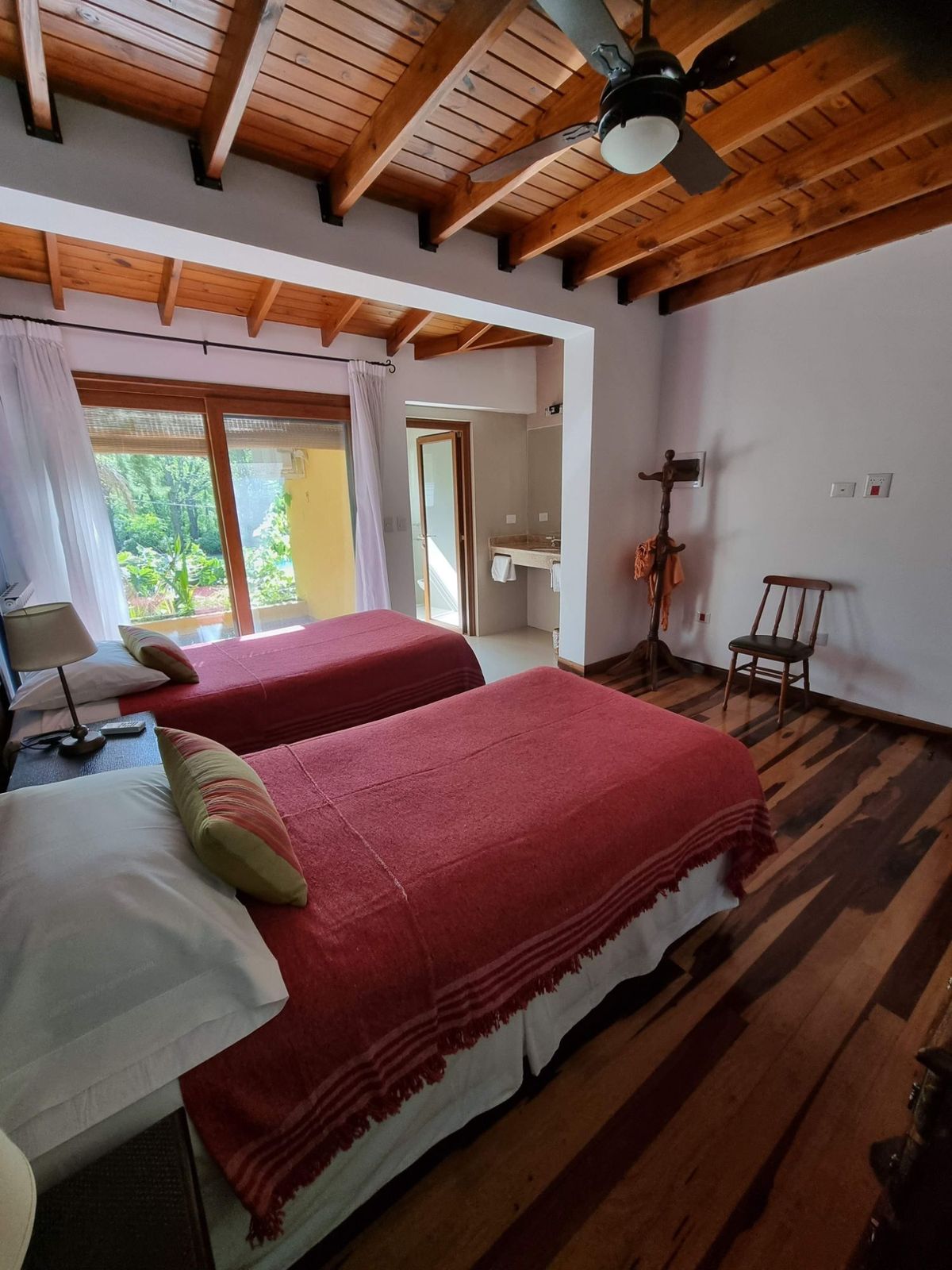 En la planta alta se encuentran los 9 dormitorios con baño en suite. La capacidad máxima es de 20 personas, pudiendo alojarse en habitaciones con distintos tipos de camas (matrimonial, matrimonial + single; dos camas singles, 3 camas singles). Todas las habitaciones cuentan con excelentes vistas al rio y al bosque, balcón aterrazado, aire acondicionado, ventilador de techo, sommier y baño privado con ducha.